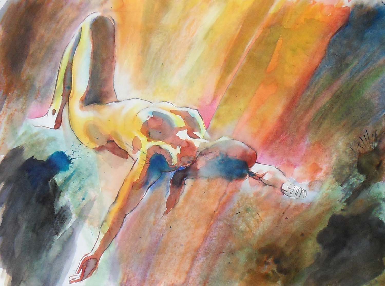| Nu (2006) - Huile sur papier | Nu (1995) - Crayon de couleur |